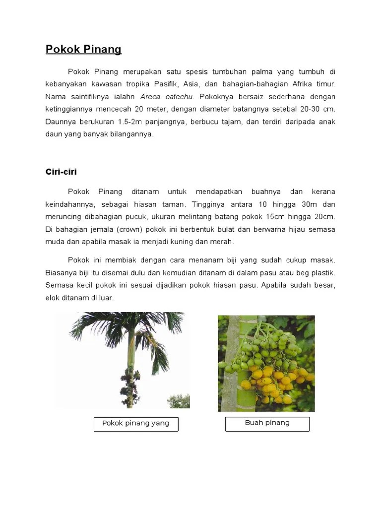 檳榔) merupakan satu spesis tumbuhan palma yang tumbuh di kebanyakan . Ada yang menggelarnya pokok pinang, pinang hiasan dan kelapa hiasan. Contextual translation of nama saintifik pokok pinang raja into english. Ada pemilik rumah gemar menanam pokok kekal sebagai hiasan taman.